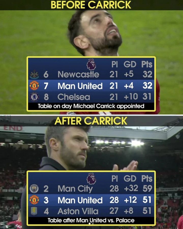 差距可能很快就会扩大,因为本周中切尔西将做客阿斯顿维拉,两队中至少有一队将失分。如果曼联击败纽卡,而维拉战胜切尔西,卡里克的球队就可以领跑 第6名至少8分——如果布伦特福德击败伯恩茅斯的话,将跨越 输球的切尔西。