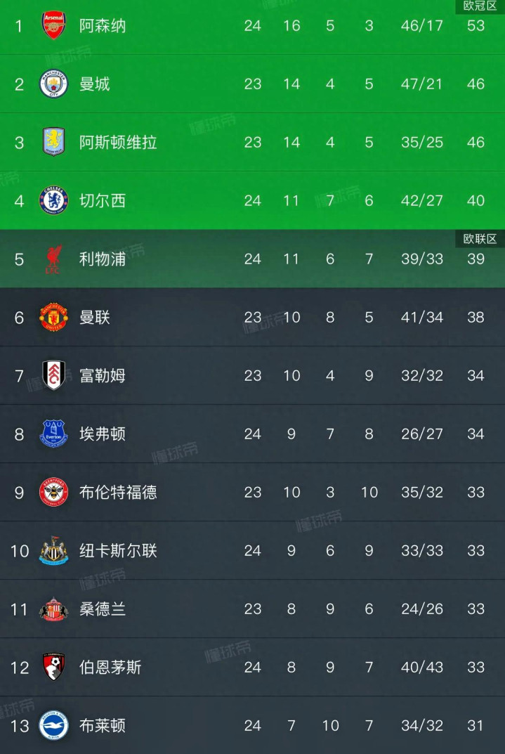 英超第24轮三场关键战于北京时间晚间同时结束。赛果汇总后,职业联赛 积分榜即时更新。