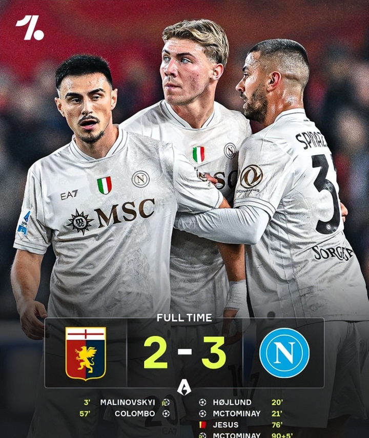 上半场第3分钟,马利诺夫斯基的十二码球射入,帮助主场作战 作战的热那亚取得了领跑 ;然而,第20分钟和第21分钟霍伊伦以及麦克托米奈的出色 连击,则让那不勒斯瞬间扳平并反超了比分;