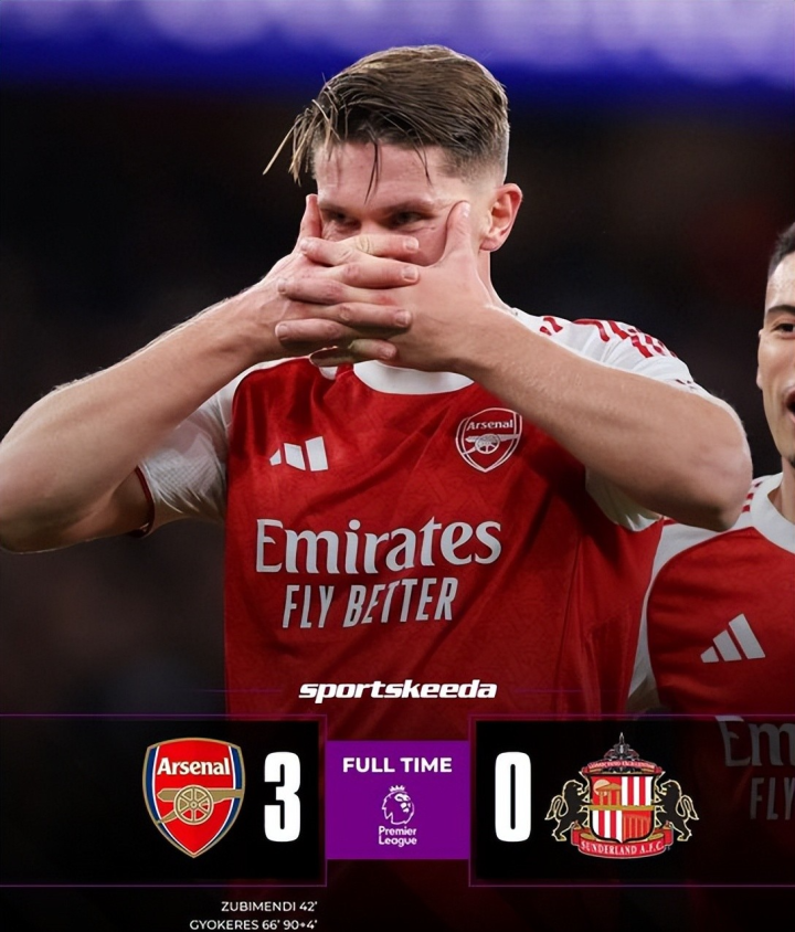 而在下半场第66和90+3分钟,哲凯赖什的连进两球则让阿森纳最终以3-0的比分轻取升班马桑德兰,从而获得了本场的最终获胜 。
